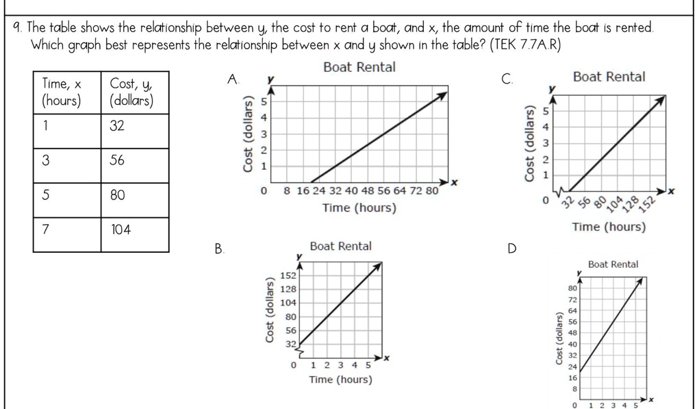 Solved I Ll Give Brainlist The Table Shows The Relationship Between Y The Cost To Rent Boat And X The Amount Of Time The Boat Is Rented Which Graph Best Represents The